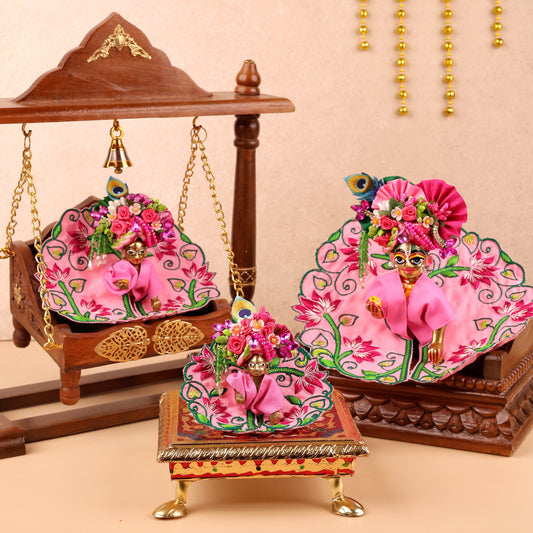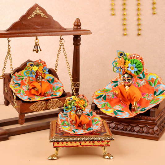 Made with premium-quality fabric and detailed craftsmanship, this poshak offers a royal and graceful look to your Laddu Gopal while ensuring comfort and elegance.