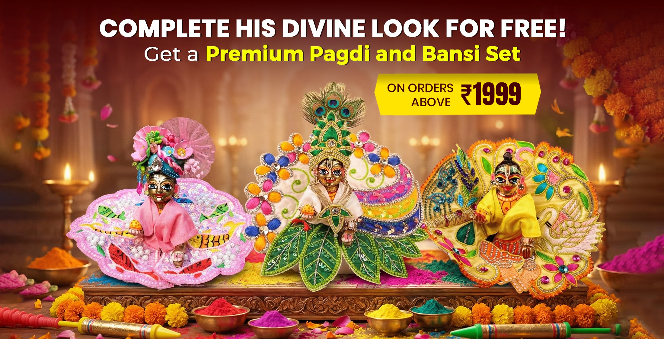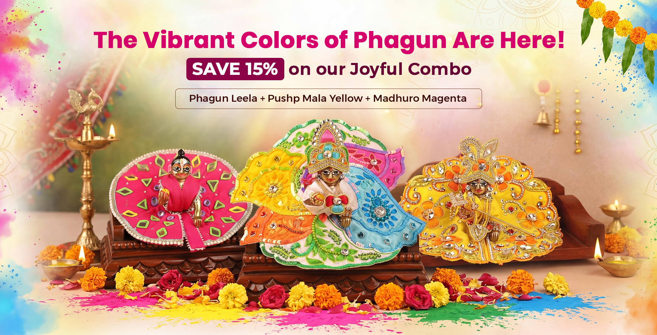 Phagun Leela Multi-Colour Laddu Gopal Poshak – Festive Designer Vastra for Thakur Ji
