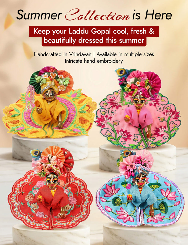 Since 2016, Devaya has crafted custom deity dresses and accessories for temples worldwide, especially appreciated by ISKCON Prabhujis and devotees. Our artisans customize divine couture for all deities and occasions. Connect with our designer to customize poshak for temples and your home mandirs.