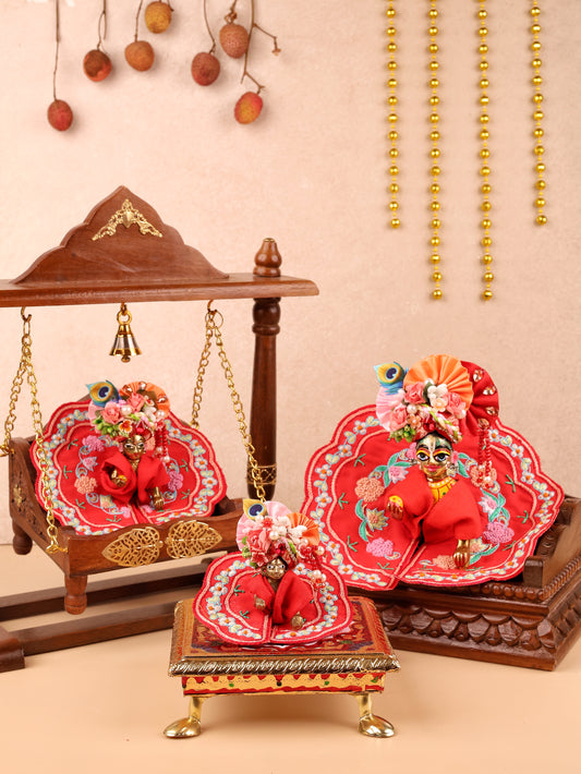 Red Wool Laddu Gopal Poshak 3 Pc Set