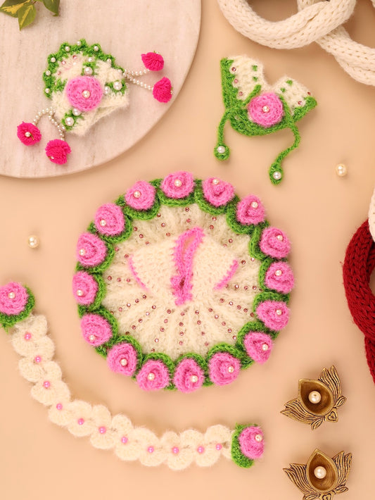 Phulwari Pink Wool Laddu Gopal Poshak 2 Pc Set